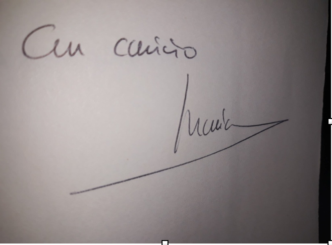 Cuando se terminó la visita todos hicimos una fila para que firmara nuestros libros y así poder tener algún recuerdo de esta maravillosa visita.